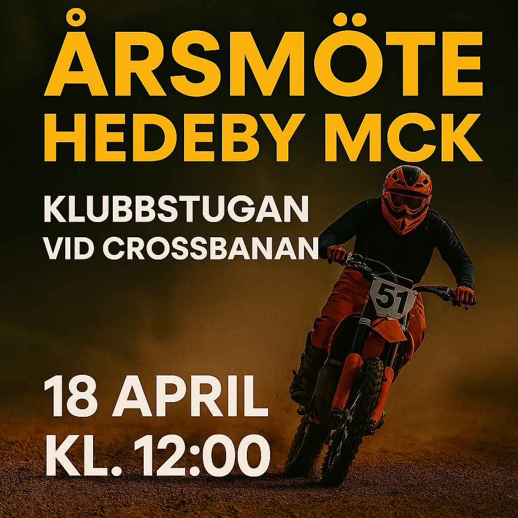 Hedeby MCK bjuder in alla medlemmar till årets årsmöte som hålls lördagen den 18 april kl. 12:00 i klubbstugan vid crossbanan.